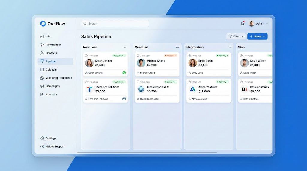 Run powerful WhatsApp Marketing Campaigns that get results. Send personalized offers, updates, and newsletters to thousands of contacts with a single click. But OrelFlow doesn’t just *send*—it **manages the replies**. Your AI Agents will handle the flood of incoming responses, answer questions, and nurture leads, allowing you to scale your marketing without scaling your team.