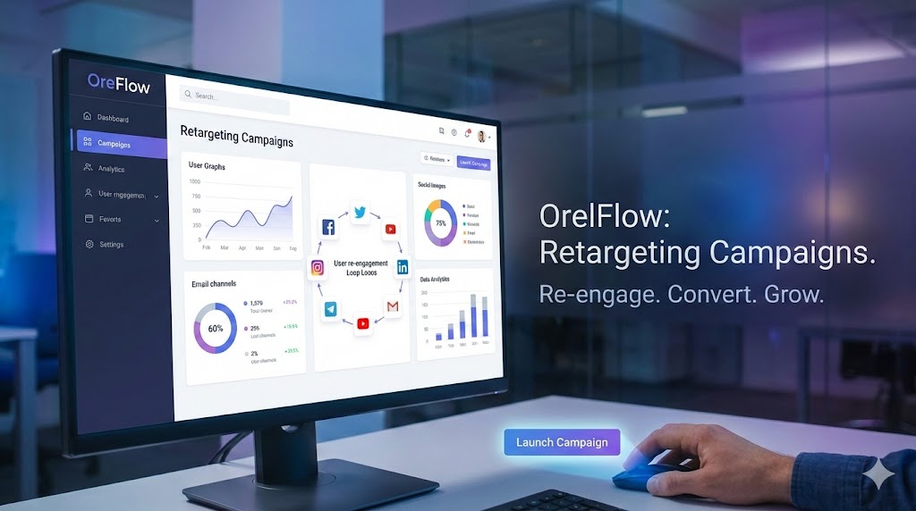 Retarget customers who visited your website, viewed products, clicked your campaigns, or interacted with your WhatsApp messages — all from one unified automation platform. OreFlow lets you instantly reach customers where they are most active: WhatsApp, Instagram, Facebook Messenger, Email, SMS, and more.